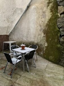 Völlig schockiert gehen wir in ein Lokal etwas trinken und versuchen eine Unterkunft zu finden. Natürlich ist die einzige private Herberge jetzt leider bereits ausgebucht und viele Hostels sind ebenso Samstag nachmittags bereits voll. Muss ich mich schuldig fühlen, weil ich zu dieser Zeit auf Pilgerreise bin? Der Wirt des Lokals bietet an, dass wir bei ihm schlafen können, sollten wir nichts finden. Das ist die andere Seite: Es gibt auch nette Menschen.
