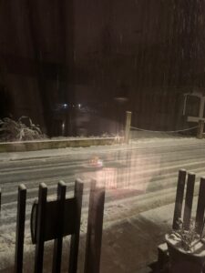 (C) In der Nacht hatten wir einen ganz schönen Sturm mit Schneeregen. Ich dachte schon, dass man das heute früh sehen würde, aber außer dass es ziemlich frisch war, konnte man nichts mehr davon bemerken.