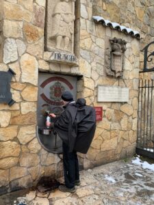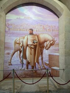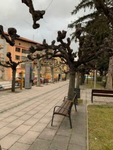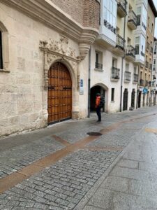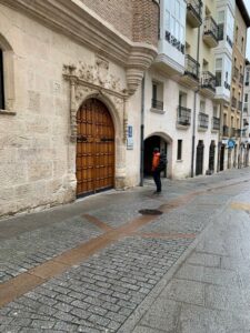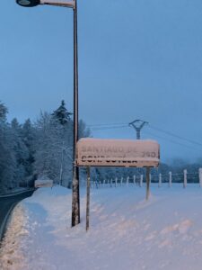 (C) Heute ging es sehr früh los, um 7:15 Uhr sind wir bereits unterwegs. Der Hospitalero läuft schon die Zimmer ab und bittet darum aufzustehen, im Hintergrund läuft Mönchsgesang und die Pilger sollen um 8:00 Uhr die Herberge verlassen. Nicht so angenehm bei den niedrigen Temperaturen außen, es hat gerade einmal 5 Grad in der Stadt und außerhalb sind es eisige -1 Grad.