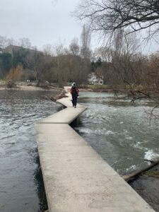 Der Ruhetag kommt für die müden Glieder gerade richtig. Am Nachmittag laufen wir durch den Ort und besuchen die schöne Brücke, von der der Ort seinen Namen hat.