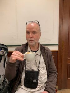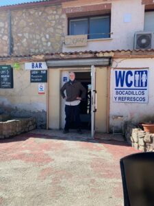 Gegen 14:00 Uhr kommen wir endlich an. Leider zu früh, aber eine Bar ist auf, aus derem Fenster uns ein Koreaner heftig zuwinkt. Wir kennen ihn nicht und denken er meint nicht uns. Als wir in die warme gemütliche Bar kommen, genehmigen wir uns zwei leckere Café con Leche und Rüdiger noch dazu etwas Hochprozentiges gegen seine Halsschmerzen. Wir kommen schließ mit dem koreanischen Pilger ins Gespräch, er ist Charles aus Los Angeles. Er dreht Youtube Filme und will auch den Camino laufen, wir wollen offensichtlich in die gleiche Unterkunft. Es ist übrigens die einzige Herberge, die im Ort auf hat. Erst ab morgen beginnt die Saison auf dem Camino France und dann haben wieder viel mehr geöffnet, hoffentlich auch die Cafés und Bars!