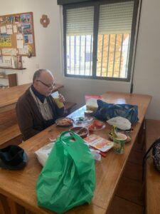 Am Nachmittag machen wir uns große Portionen mit leckerem Salat und essen knuspriges Baguette dazu. Ich werde gefragt, wo man denn hier Kochen kann. Ich war vor Jahren schon einmal hier war und da ging das noch alles, aber mittlerweile gibt es weder eine Mikrowelle noch einen Wasserkocher. Man kann mit einem Plastikbecher Wasser zum Hospitalero gehen und er macht einem dann das Wasser in der Mikrowelle heiß, so ändern sich die Zeiten.