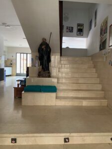 Kurz vor dem Ort schwächel ich total und bekomme auch noch Herz- und Kreislaufprobleme. Ich habe zu viel gehetzt, das muss ich mir abgewöhnen. In Santo Domingo angekommen gehen wir in die kirchliche Herberge, sehr schön, aber man muss sich drei Stockwerke nach oben quälen. Gott sei Dank gibt es hier keine Stockbetten…