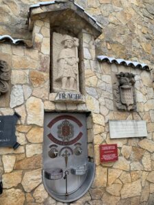 Dann das Highlight des Tages und fast wären wir auch noch daran vorbeigelaufen: Ein Brunnen, aus dem Wein gezapft werden kann! Herrlich, wir probieren und füllen eine Flasche ab. Das Weingut betreibt diese Zapfstelle und stellt täglich 100l für alle durstigen Kehlen zur Verfügung, sehr nobel!