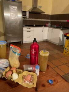 Um 8:00 Uhr gibt es Frühstück, also stehen wir um 7:00 Uhr auf und packen die Rucksäcke. Das Frühstück ist lecker und es gibt sogar frisches selbstgebackenes Brot.