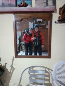 Gegen Abend zieht Nebel auf und dann tobt doch tatsächlich ein Sturm in den Bergen mit heftigem Wind und Schneeschauer. Ich bin sprachlos, wie schnell sich das Wetter in den Bergen ändern kann. Morgen haben wir eine lange Tour vor uns. Es werden ca 25 Kilometer bis nach Triacastela werden. Die Sommerzeit wird heute Nacht eingestellt, dann fehlt morgen früh eine Stunde…