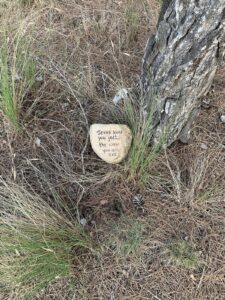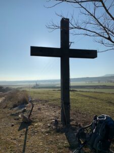 Um 8:00 Uhr brechen wir auf und laufen die ersten Meter über die Bundestrasse, um etwas Strecke zu sparen. Im Nu sind wir in Foncebadon und trinken einige Milchkaffees. Einen schönen Hippierucksack schenkt mir Rüdiger. Tolles Andenken, ich freue mich sehr! Anschließend geht es weiter zum Cruz Ferro. Es ist sehr ruhig dort und wir genießen die Ankunft und unsere kleine Auszeit dort mit Stein ablegen. Die Zermonie dort sein und/oder die Sorgen seiner Lieben abzulegen hat etwas wirklich Ergreifendes…. Ein junger Pilger, welcher einige Zeit nach uns ankommt, fragt nach einem Stift, er möchte seinen Stein beschriften…