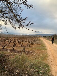 Der Weg nach Logrono führt quer durch die Weinrebengebiete der Rioja. Es weht wieder ein eisiger Wind und lehrt uns, dass doch noch wärmere (und schwerere) Kleidung für die Reise hätten mitnehmen sollen. Nun ist es halt so und wir können noch froh sein, dass wir die Regenjacken und -hosen dabei haben, die uns vor dem eisigen Wind schützt.