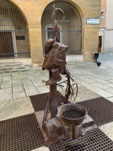 In Logrono machen wir eine Kaffeepause und ich beschließe, den Bus nach Navarrete zu nehmen, um meinen Fuß- und Kniegelenken etwas Pause zu gönnen. Der Plan ist, dass ich mit den zwei Rucksäcken vor fahre und Rüdiger läuft. Es dauert noch ein paar Minuten, bis der Bus kommen soll, Rüdiger ist schon weg, da stellt sich heraus, dass jetzt erst mal gar kein Bus mehr fährt wegen des Streiks der Fahrer. Sowas Blödes! Hätte ich es gewusst, dann wäre ich ja gelaufen, aber zwei Rucksäcke gehen beim besten Willen nicht, das ist mir zu schwer. Nun denn, dann muss ein Taxi her. Eine Spanierin ist so lieb und bestellt mir eines, 20.- €, das geht ja noch und vor allen Dingen werde ich bis vor die Tür der Albergue gefahren.