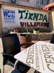 Wir machen eine Pause mittendrin an der Station wo man sich im Nirgendwo einen Stempel holen kann, nennt sich Casa de Diaz. Wir essen etwas Obst und ich trinke Zitrone mit Wasser. In den neun Jahren, die jetzt vergangen sind, ist das Häuschen gewachsen und der spirituelle Pilger hat sogar drei Aussenbetten. Nach der kleinen Pause geht es weiter in den Vorort von Astorga, wo wir einen Café trinken.