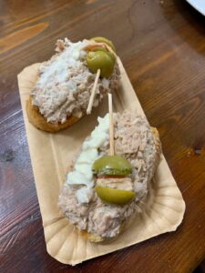 Später gehe ich zum Restaurant, um uns etwas zu essen zu besorgen. Leider ist es schon 16:00 Uhr und die Küche geschlossen, so bleiben uns nur die teuren Tapas übrig. Sie schmecken superlecker, sind aber leider sehr fettig. Später kommt noch Ieva, eine Pilgerin aus Lettland in die Herberge. Wir erzählen über unsere bisherigen Erfahrungen von der Reise, insbesondere über die verschneiten Pyrenäen und auch den Sinn des Pilgerns. Es ist ein sehr lustiger und kurzweiliger Abend.