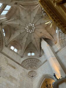 Ich starte noch eine E-Mailanfrage an eine Herberge in Ages. Dabei stellt sich heraus, dass diese geschlossen hat und die Municipal wurde uns von vorausgehenden Pilgern nicht empfohlen. Eigentlich hatten wir geplant, 8 Kilometer mit dem Bus vorzufahren und dann 20 Kilometer zu laufen. Da wir aber schon genug geschädigt sind mit teuren Hotelübernachtungen in winzigen Orten oder aber auch Pamplona, haben wir nun umdisponiert und fahren morgen mit dem Bus nach Burgos und gehen dort in die Bettenburg neben der Kathedrale.